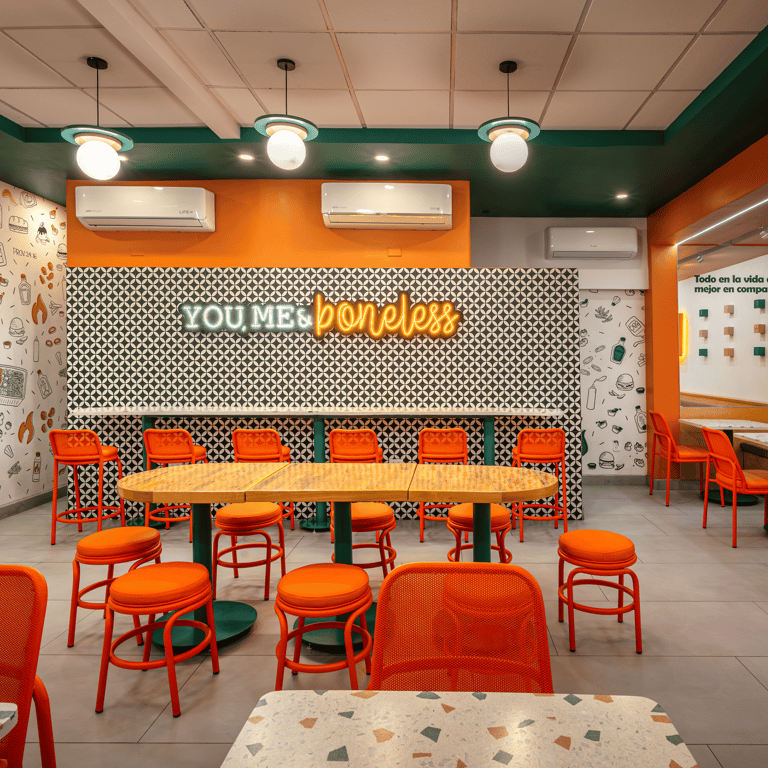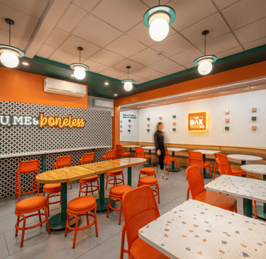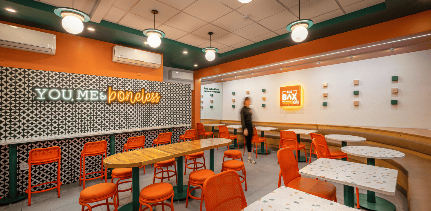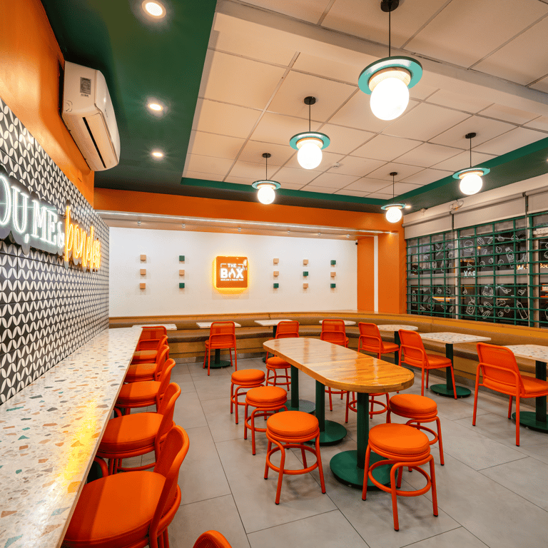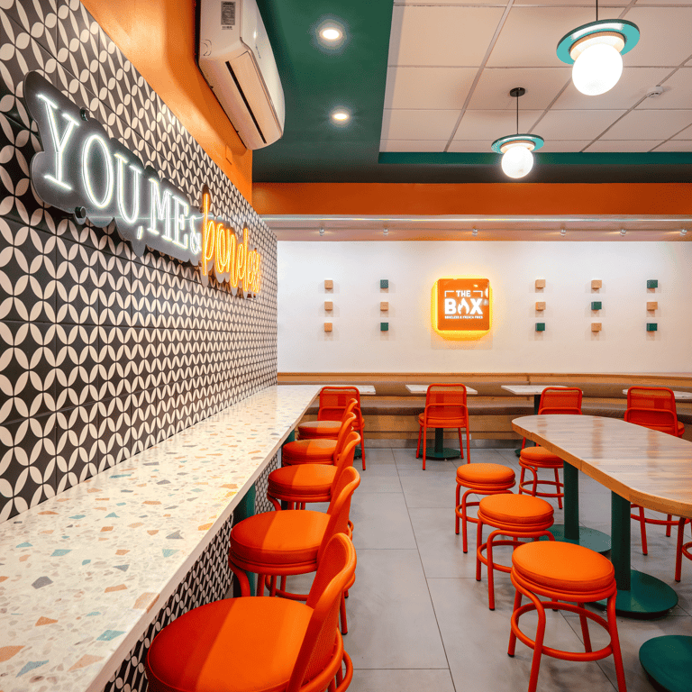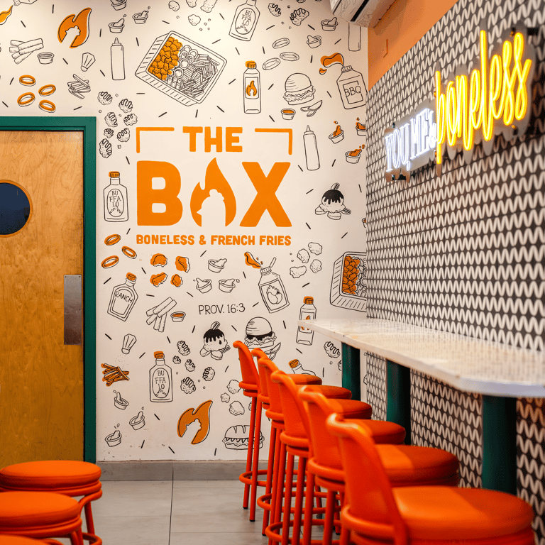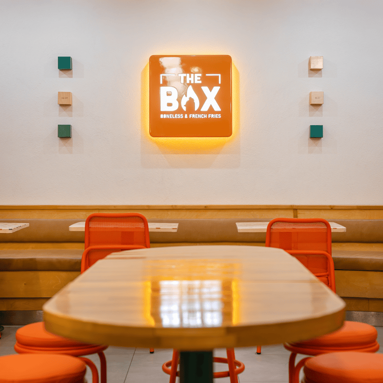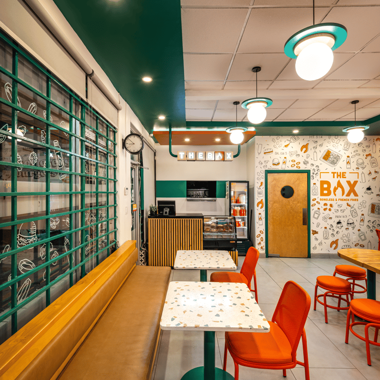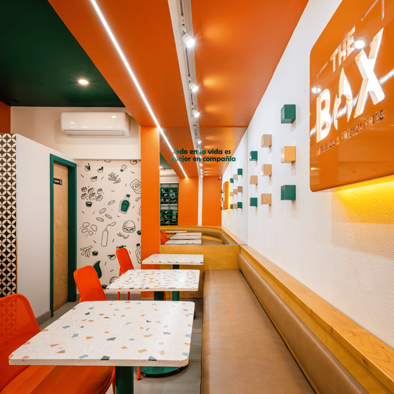 Su diseño vibrante refleja frescura, calidez y comunidad: detalles con causa que lo convierten en algo mas que un lugar para comer. The Box es calidad, buen ambiente y conexión en un mismo espacio.